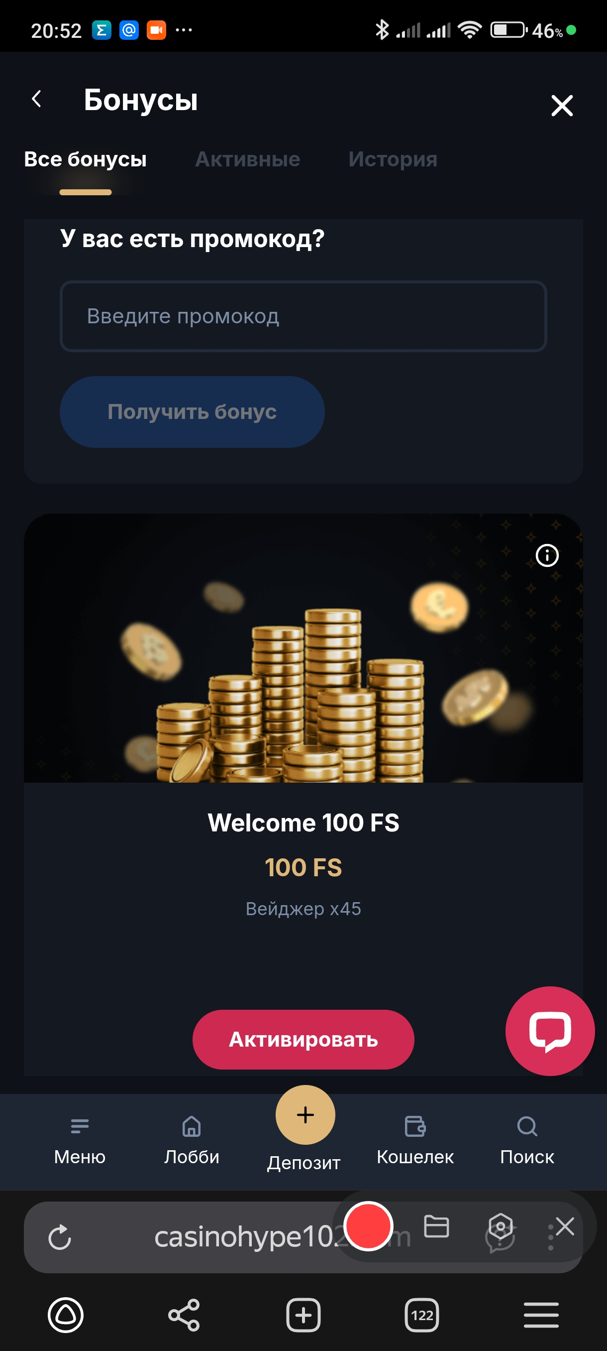 100% до ₽10 000 (х45), мин деп ₽1000